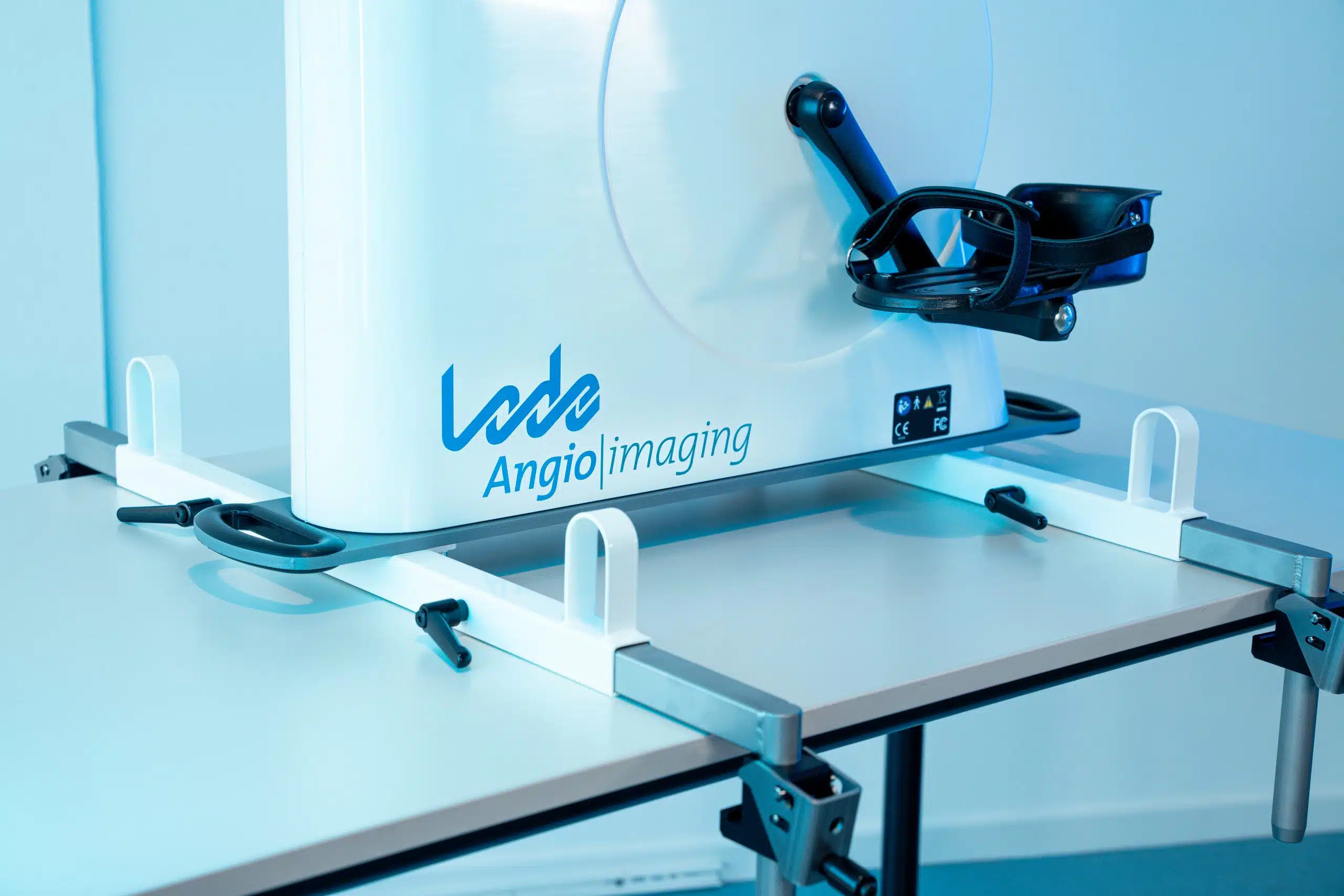 Angio Imaging’in pedal ayakkabılarıyla birlikte gelen ustaca çok işlevli sabitleme kiti, Angio ergometresinin, standart 25 x 10 mm’lik bir alet yan rayına sahip olduklarında, çok çeşitli görüntüleme, fizyoterapi ve muayene masalarına monte edilme sürecini kolaylaştırır.